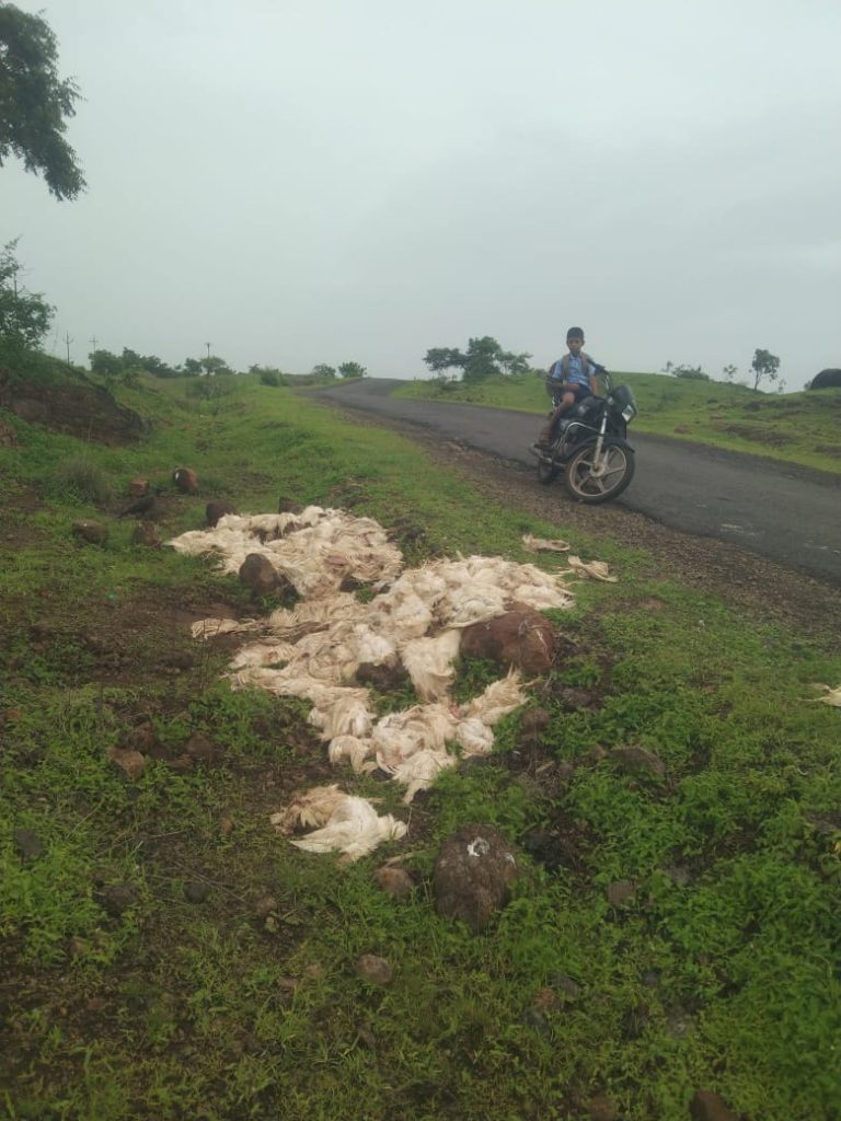 धामणी – लोणी रस्त्याच्या कडेला मेलेल्या कोंबड्यांचा पडतोय खच!!