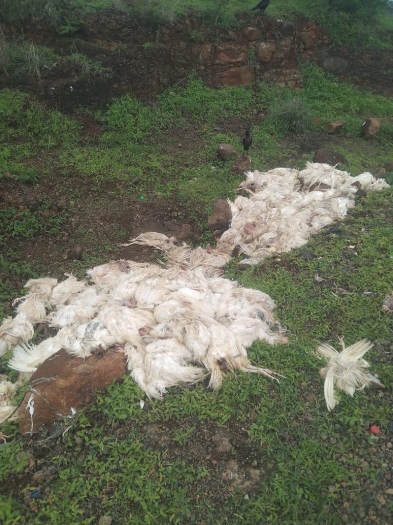 पंचनामा लोणी (धामणी) प्रतिनिधी – धामणी (ता.आंबेगाव ) या परिसरातील धामणी,लोणी रस्त्यावर धामणी बाजूकडील असणाऱ्या पांगुळटिका परिसरामध्ये नेहमीच मेलेल्या कोंबड्या टाकल्या जातात. मंगळवार (दि.२४ ) पहाटेच्या सुमारास तब्बल २५०-३०० मेलेल्या कोंबड्या टाकण्यात आल्या होत्या. सकाळी काही नागरिकांनी पिंजऱ्याची गाडी तिथुन जाताना पाहिली. त्या गाडीला थांबवायचा प्रयत्न केला परंतू ती गाडी खूप भरधाव वेगाने निघून गेली होती.