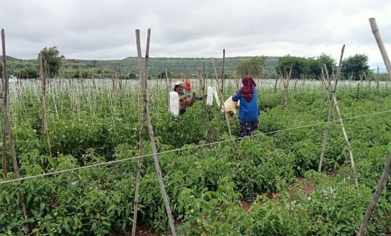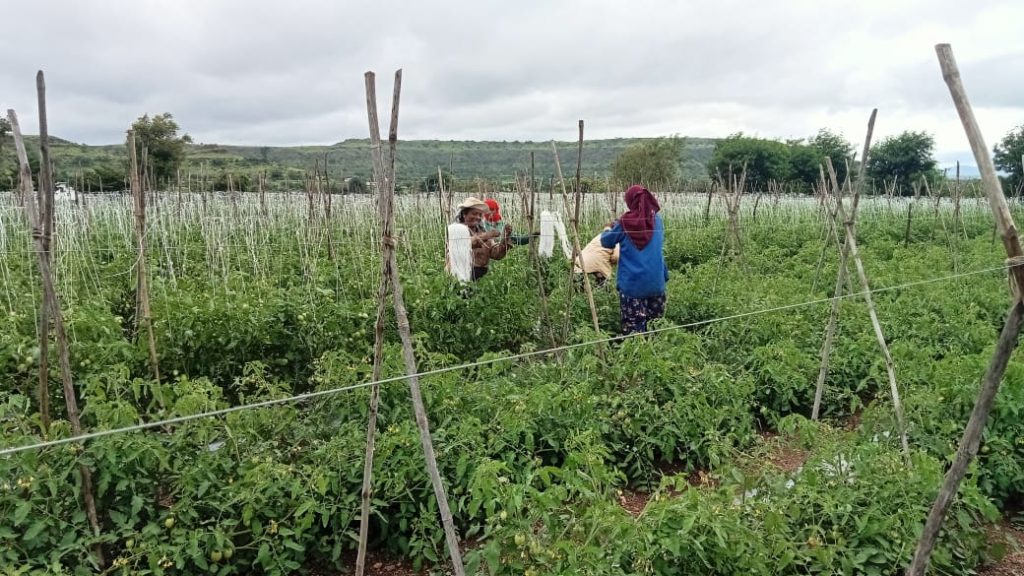 आंबेगाव तालुक्यातील पूर्व भागात टोमॅटो बांधणीला आलाय वेग !!
